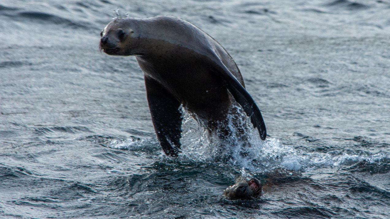 Pinguïns worden in het Engels zo mooi flyless birds genoemd. Toch zien we de ezelspinguïns regelmatig pogingen doen om toch te vliegen. Als ze achterna worden gezeten door een predator, dan vliegen ze echt het water uit.