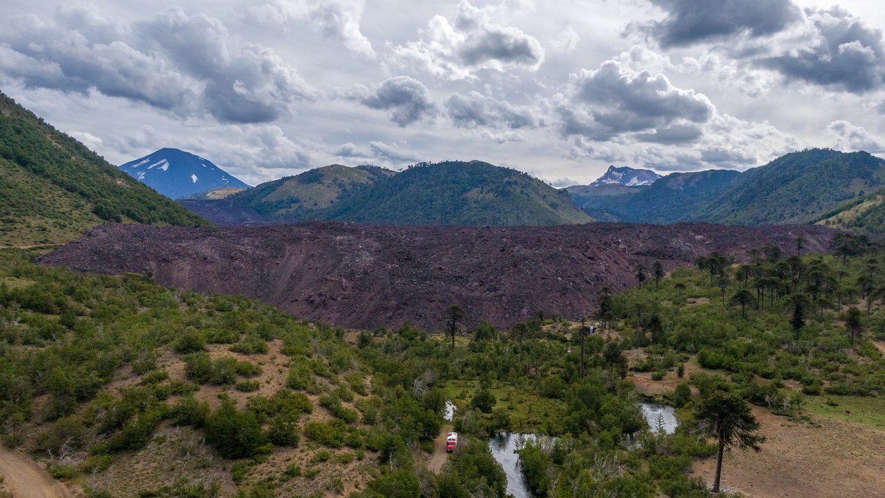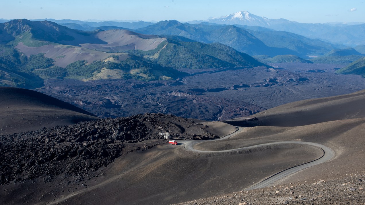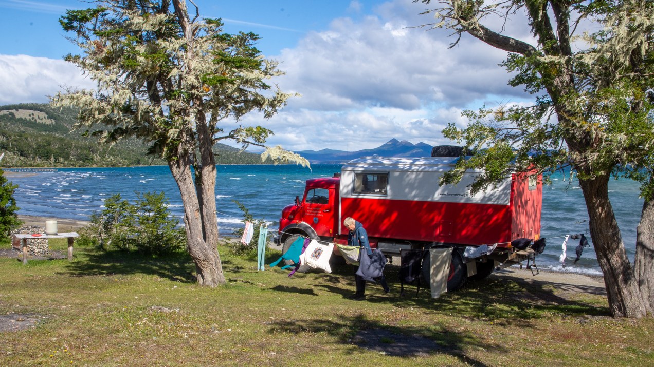 Gek genoeg – althans voor ons – hebben de Engelsen eind 19e eeuw de grens bepaald tussen Spaanstalig Chili en Argentinië. Hierdoor zitten wij 2 weken in Chili om van Argentijns Patagonië naar Argentijns Vuurland te gaan. En dat is zeker geen straf. We lopen rond in een prachtig vulkaanlandschap.