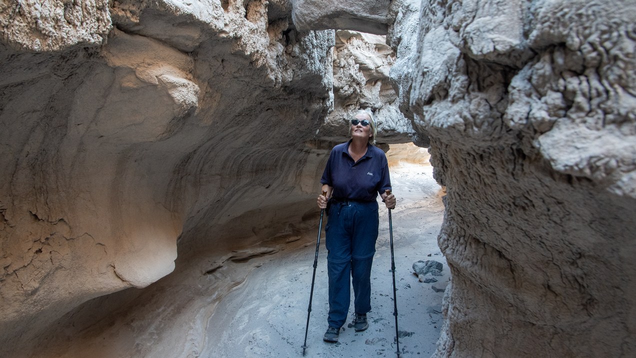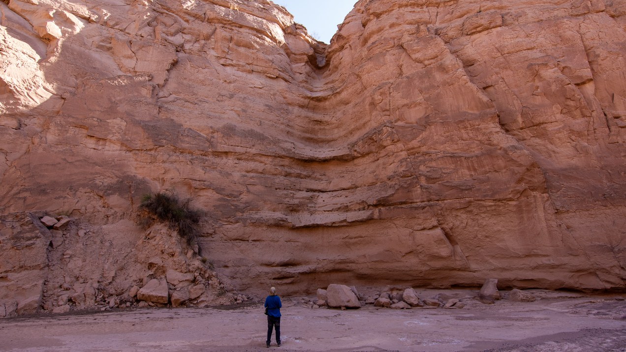 De volgende dag zijn we in dit gebied een wandeling gaan maken. De geologische processen zorgen niet alleen voor slapende reuzen, maar ook voor een natuurlijke brug. Het is  5 uur lopen, maar dan heb je ook wat. Ook hier is weer niemand, dus deze brug is er voor ons alleen. In het Spaans heet deze brug de Duivelsbrug: Puento del Diablo.