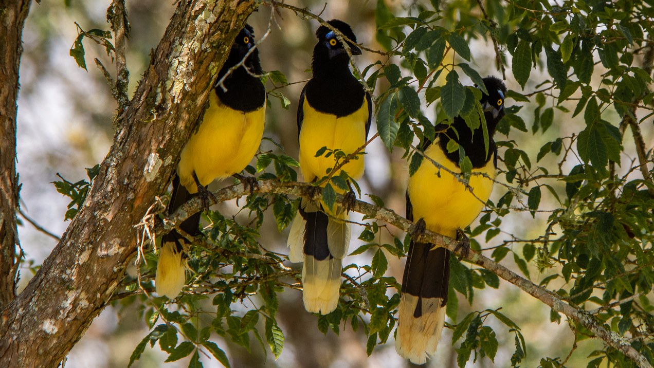 Weer drie vogels op een rij. Deze keer de Pluchekruingaaien. Die zijn meer dan nieuwsgierig, zeg maar gerust brutaal. Ze jatten zelfs het brood uit de hand van Roelien.