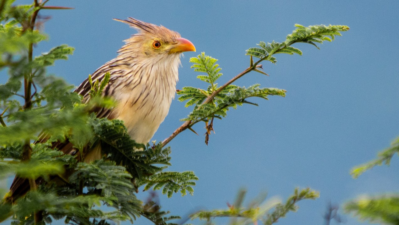 We blijven ons verbazen over al die vogels die voor de lens opduiken. Hier de Guirakoekoek. Een stuk kleurrijker dan de ovenvogel hierboven.