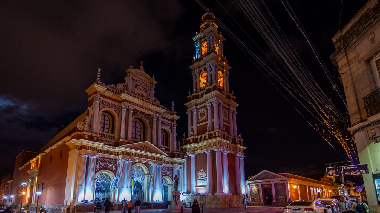 Slechts zelden zijn we in het donker in een stad. Deze keer wel, In Córdoba. Bij deze de Franciscokerk by night.