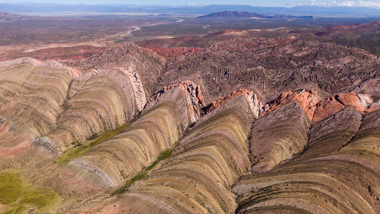 Dit bizarre landschap is alleen maar goed te zien vanuit de lucht. Elke poging om dit in woorden te pakken, is gedoemd te mislukken. Vanuit onze luie stoel hebben we er uren naar zitten kijken. Met een wijntje erbij wordt het nog hallucinerender.