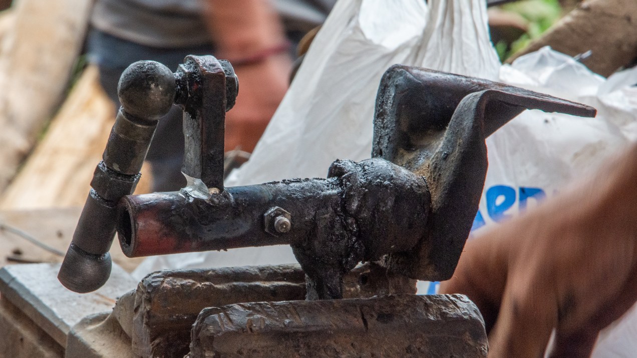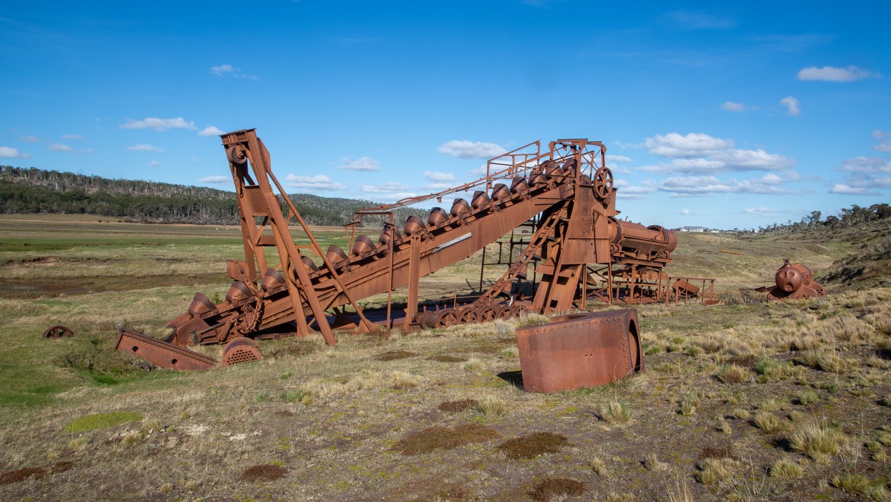In 1904 werd met veel pijn en moeite deze monsterlijk grote Engelse machine hierheen gebracht om op industriële schaal de grond te zeven voor goudwinning. De opbrengst viel echter tegen. In 1910 werd de machine stilgezet. En nu ruim 100 jaar later is ie opgewaardeerd naar industrieel erfgoed.