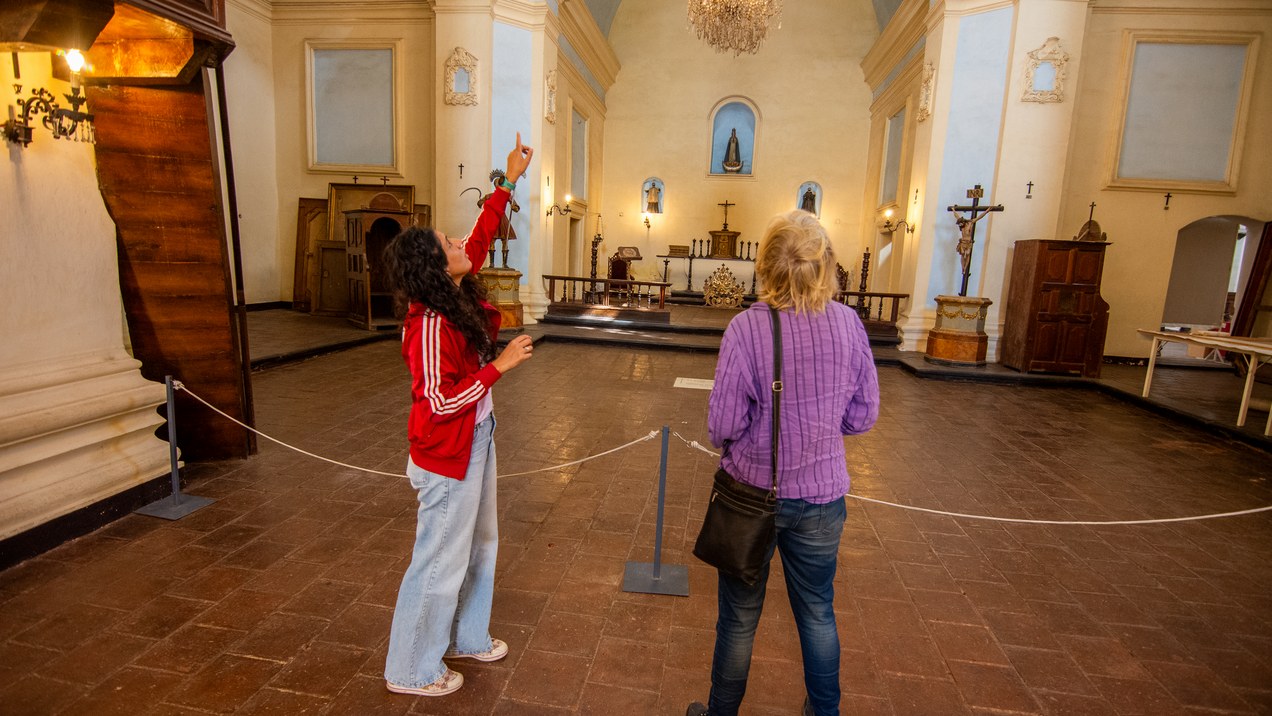 We zitten in een vallei die doorloopt naar Bolivia. De Spanjaarden hebben hier een bijzondere stijl ontwikkeld om kerken te bouwen. Sober en toch elegant. Binnen hangen vaak schilderijen van de Spaanse veroveringen. Dat is dan weer wat minder religieus.