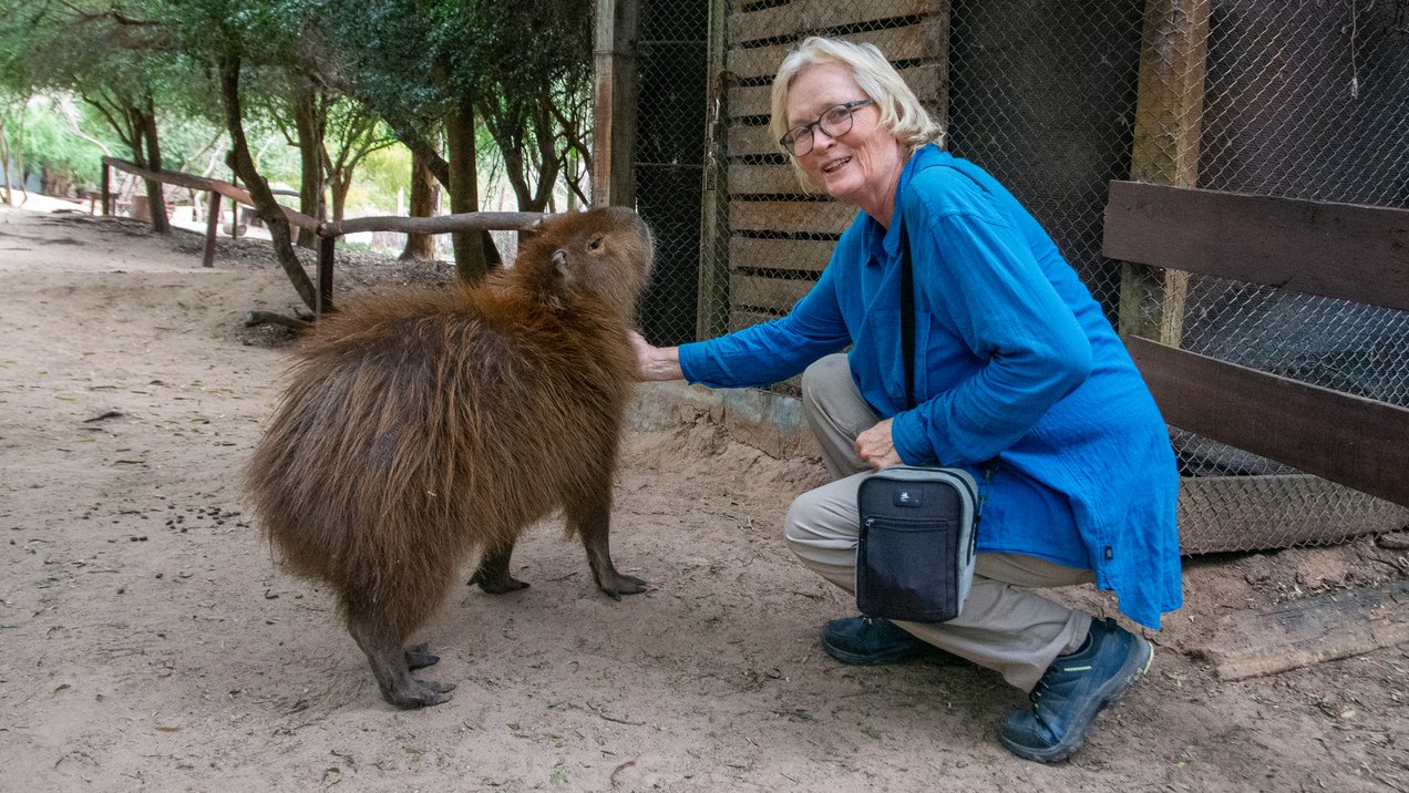 Het lukt ons niet om de capibari’s in het wild aan te treffen. Dan maar in een capibari-opvangcentrum. Een soort Pieterburen, maar dan met heeeeel veeeeel ruimte.