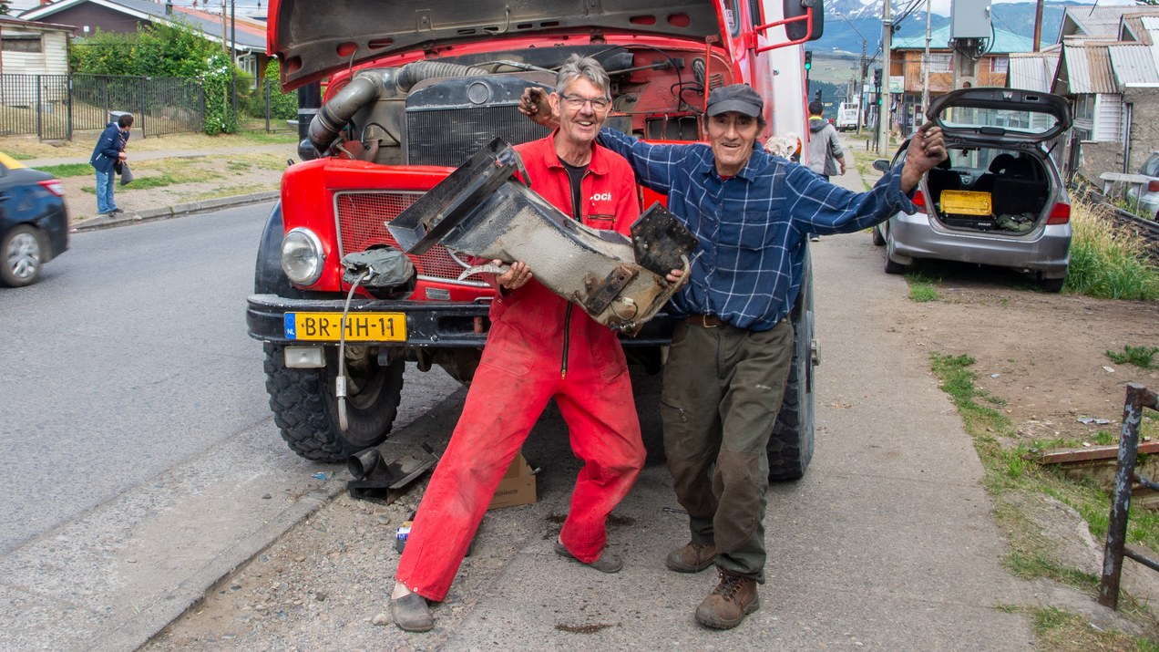 Ineens horen we geratel bij een achterwiel. Eén wielbout afgebroken en de andere moeren zijn losgelopen. We zetten ze vast, rijden naar het eerste het beste dorp. Binnen een uur en tegen betaling van een paar tientjes hebben we 5 nieuwe bouten en kunnen we weer verder. Eigenlijk geen item waard in deze nieuwsbrief.
