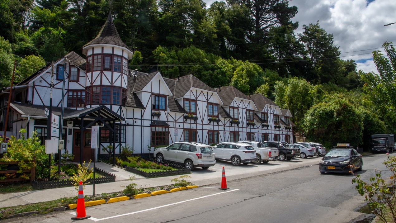 Aan de oever ervan staat Gran Hotel Viena. Een hotel door Duitsers gebouwd in de jaren 1930. Er zijn geruchten dat na WO-2 Nazi’s hier een onderdak vonden. Nu is het vooral een vervallen hotel.