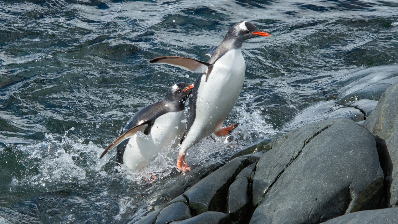 Zowel de ezelspinguïn als de kinbandpinguïn zijn nu nog heel actief. Zodra het ei gelegd is, komt er een andere rolverdeling. De één broedt, de ander zorgt voor voedsel. Maar dat is pas over een paar weken.