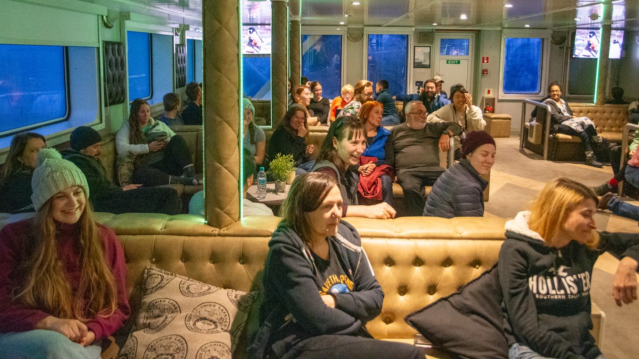 Het is best wel wennen voor ons om met 88 medereizigers te zijn. Er zijn 20 nationaliteiten aan boord en verrassend veel jongeren. Dat wij ons afvragen: waar doen ze het van? We spreken veel mensen, soms diepgaand, vaker oppervlakkig.