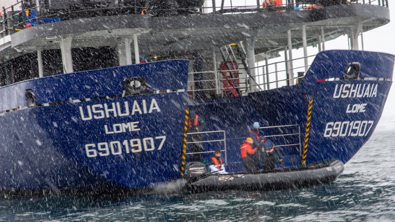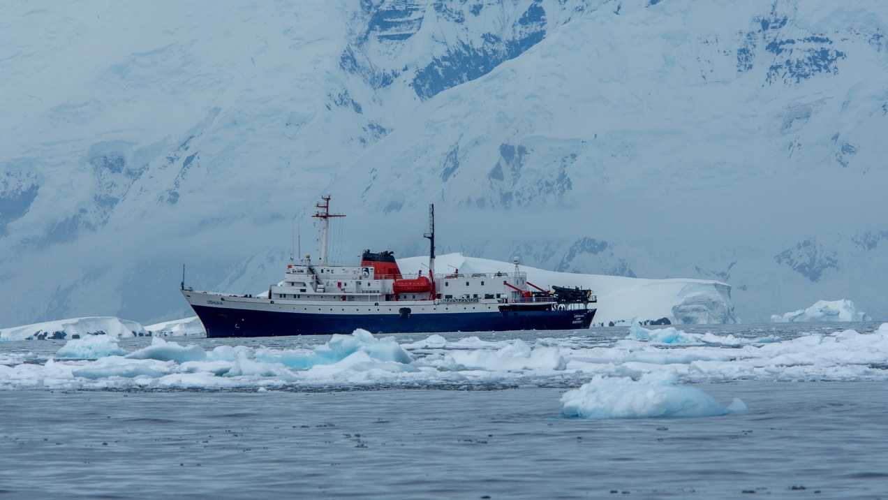 We zijn 10 dagen aan boord van de MV Ushuaia. Dat is een onderzoeksschip uit 1970. Het is 85 meter lang en kan 90 passagiers meenemen. Het is één van de kleinste schepen die naar Antarctica varen. Het schip heeft geen stabilisatoren waardoor de 50-urige oversteek door de Drake Passage behoorlijk ruig kan zijn.