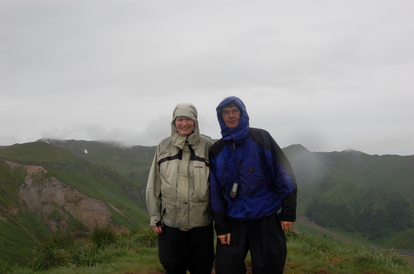 Manier van reizenSamen reizen is intensief. Je zit wekenlang in een vreemde omgeving continue in elkaars nabijheid. Thuis leef je veel routinematiger en ben je meestal een groot deel van de dag van huis. Gedurende een reis - zelfs bij ons - kan het zomaar gebeuren dat er misverstanden en spanningen optreden. Dat is op zich niet erg, zelfs vaak leerzaam. Maar aangezien reizen het hoofddoel is, is het wellicht toch handig om wat tips en suggesties aan te reiken om het verblijf in den vreemde zo leuk mogelijk te maken. We zijn als vriendenclub op stap. Bravotravel is alleen de naam van een website, niet van een reisorganisator. Je bent dus zelf verantwoordelijk voor je deelname aan deze reis. Je financiële bijdrage is alleen een tegemoetkoming in de reiskosten. Reizen met Bravotravel is geen draaiboekgebeuren. Cock heeft als reisleider van een grote reisorganisator gezien hoe fnuikend het kan zijn als er geen flexibiliteit in het programma zit. Als Bravotraveller help je meestal mee om de activiteiten te bedenken en uit te voeren. Vaak is er een goede mix van cultuur en natuur, waarbij sportieve uitdagingen niet uit de weg worden gegaan. Soepel van geest en lichaam is dus wel handig. Meestal zit er in een reis(deel) een trekking van meerdere dagen. Dit betekent dat er dan met bepakking gewandeld wordt in gebieden waar we anders niet zouden kunnen komen. De ervaring leert dat ook mensen die dat niet gewend zijn, maar wel de wil hebben om het te doen, dat met succes én plezier volbrengen. Een heel duidelijk beeld van onze manier van reizen is te vinden in de beschrijvingen van IJsland 2006. Deze zijn grotendeels geschreven door de deelnemers en zijn niet gecensureerd! Roelien en Cock: mei 2007 in Frankrijk op een vulkaantop in de Auvergne. |