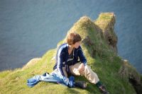 We gaan alweer wandelen. Ik vertrek in short en T-shirt. We beklimmen een heuvel, van waarop we een prachtig uitzicht hebben op Risin en Kellingin, op fjorden, heuvels en verder liggende eilanden. Bij onze terugweg slaat het weer om. Er steekt een koude wind op en het begint licht te regen. Gelukkig heb ik een trui en regenjas mee, maar mijn handen verkleumen. Terug in het dorpje bezoeken we nog de plaats waar graven van Vikingen zijn gevonden. Net als we terug zijn in de auto, begint het te gieten en te stormen. We hebben geluk gehad! 12 juli. Hondenweer: storm en regen. We rijden naar Kirkjubour. Kirkjubour ligt ten zuiden van Torshavn en was in de 12de - 13de eeuw het geestelijk en wereldlijk centrum van de Faroer. We bezoeken er de ruïne van de Sint Magnus kathedraal uit de 13de eeuw, de Sint Olafskerk en de roykstovan. Over de Sint Magnuskathedraal hebben ze een futuristisch dak geplaatst om het open interieur te beschermen tegen wind en regen. Een ongewoon verschijnsel! De Sint Olafskerk is de enige middeleeuwse kerk op de Faroer die nog gebruikt wordt. Onder elke stoel is er een verwarmingsbuis! Roykstovan is een traditioneel boerenhuis met een turfdak (dak waarop gras groeit!) uit de middeleeuwen. Roykstova betekent all-purpose-room. Grote kamer, waarin de familie at, sliep en woonde. Om 16u zien we onze ferry de Smyril Line aankomen in Torshavn en jawel hoor, daar is hij dan, Filip, onze vierde reispartner! Filip is een 27-jarige acteur uit Wetteren. Hij reist deze zomer door Denemarken, Noorwegen en IJsland en zal ons vanaf nu vergezellen op onze IJsland-reis. Het is verschrikkelijk slecht weer. Bij de afvaart om 20u lopen we lek aan de achterzijde. Ik was op dat moment aan het dek en had niet erg aandachtig geluisterd. Een sympathieke Zwitser legt me uit, wat er gebeurd is en ik zeg tegen hem, dat het wel een tijdje zou kunnen duren, waarop hij zegt ' Ca, c'est l'aventure!'" Het schip heeft bij het vertrek door de stormwind iets geraakt en heeft een lek geslagen. Zo vlug gebeurt dat dus! Het is een klein lek boven het waterpeil. Men meldt ons dat we bij de tweede haven aan de Faroer in Klavsvik het lek gaan herstellen. Op die manier krijgen we een deel van de noordelijke eilanden te zien. De aankomst in Klavsvik was heel mooi. Ons lek en onze aanleg in Klavsvik haalt zeker vandaag het voorpaginanieuws op de Faroer! Er staan twee kijkfiles, er is een cameraman enz. We zien dat de mensen onderaan duidelijk niet goed weten wat ze met dat lek moeten aanvangen. Daarna wordt het schip gedraaid, omdat ze er dan beter aankunnen. Later klinkt er door de microfoon dat we pas de volgende dag om 6u zullen vertrekken en om 21u zullen aankomen. Vertraging van 13u! Daar gaat onze eerste dag op IJsland. We mogen wel opnieuw naar de auto om wat spullen te nemen en krijgen gratis ontbijt en lunch. 13 juli. Laat opgestaan. Te laat voor ontbijt, maar wel gratis lunch á volonté. De zee is vrij wild, maar dankzij het reispilletje heb ik er geen last van. De zon schijnt de hele dag. Het is aangenaam op het dek, maar toch te koud om er te lang te blijven zitten of staan omwille van de wind.