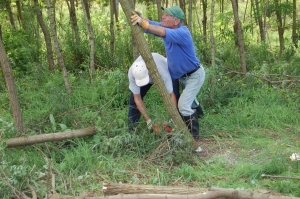 Poolse Robiniaplantages en andere natuur Sinds 1999 beleggen wij in een Poolse Robiniaplantage. Robinia is een Europese hardhoutsoort die tropisch hout kan vervangen. Ook helpt de beplanting van bomen op vrijgekomen grond van de vroegere kolchozen (zeer grote staatslandbouwbedrijven) met het vastleggen van CO2. En dat kan je als compensatie beschouwen van het brandstofgebruik van onze BraVo. Maar goed, de plantage. We krijgen tekst en uitleg van de Poolse boswachter. Hij heeft zo'n 900 ha Robinia onder zijn beheer. Het is een echt Europees project. Het begint met Hongaarse stekjes (11.000 per ha) en geld van Nederlandse groene beleggers. Het geeft vast werk aan 5 Polen en in in hoogtijdagen - met planten of onkruid bestrijden - los werk aan soms wel 120 mensen. En dit jaar is er de eerste bescheiden kap en het hout gaat naar een Duitse firma. Wij zijn onder de indruk van de resultaten, maar denken ook dat het nog wel een tikje professioneler kan.