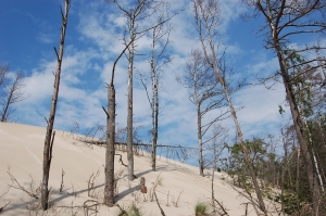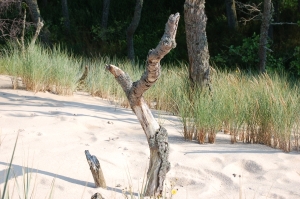In het Slowinski Nationaal Park (hieronder) hebben de bomen het zwaarder. De duinen verplaatsen zich hier tot wel een meter per jaar. Bomen kunnen zo na verloop van een aantal jaren geheel verdwenen zijn. Deels lijkt het wel een bomenkerkhof. De bijnaam van dit gebied: Poolse Sahara.