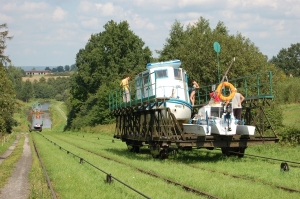 Water- en bunkertechniek in Polen Hoe overbrug je met een kanaal 100 meter hoogteverschil? Wij Hollanders en vele andere volken zouden dat met sluizen doen. Nou hier niet. Hier hebben ze iets anders bedacht. Hier is het Elblagski kanaal: je vaart de boot op treinrails! De ontstane trein wordt over de rails aan een staalkabel omhoog getrokken en boven vaar je er weer af. We aanschouwen dit prachtige stukje techniek. Het mooie is dat de kabels aangedreven worden door een watermolen. Deze watermolen wordt gevoed door water dat toch al van boven naar beneden wil.