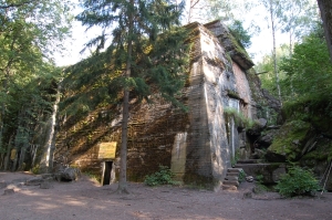 Drie dagen voordat de Russen kwamen, hebben de Nazi's dit complex proberen op te blazen. Maar ja, het was gebouwd om zware bombardementen te kunnen overleven, dus de 8 meter dikke daken (met schokdempers er in!) zijn niet echt weg.