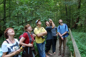 Knokkelkoorts Muggen spelen een hoofdrol in dit deel van het verslag. Ze prikken door je kleren heen, zoemen je gek en veroorzaken wellicht op termijn knokkelkoorts. Het frappante is dat hier muggen geëvolueerd zijn die ook van Roelien houden. Zal Darwin ook wel een verklaring voor hebben. We bezoeken een tweetal nationale parken in Oost-Polen. Eerst Biebrzanski, maar dat heb je al gelezen in verslag 1. En daarna Bialowieza. Het laatste echte oerbos van Europa. Het strekt zich aan weerszijden van de grens uit. Het kleinste deel ligt in Polen en is het best toegankelijk. Het grootste deel ligt dus in Belorus (Wit-Rusland) en is vooral door de huidige dictator in gebruik voor de jacht en zo. Behalve oerbos is hier ook de Europese oerkoe: de wisent. Een broertje van de Amerikaanse bison. Eigenlijk was de wisent uitgestorven, maar met hulp van exemplaren uit dierentuinen is ie geherconstrueerd, zoals de Polen dat zo mooi zeggen. In het bos zien we wel de oerbomen, zoals 600 jaar oude eiken. Voor de oerkoe moeten we naar het bisonreservaat.